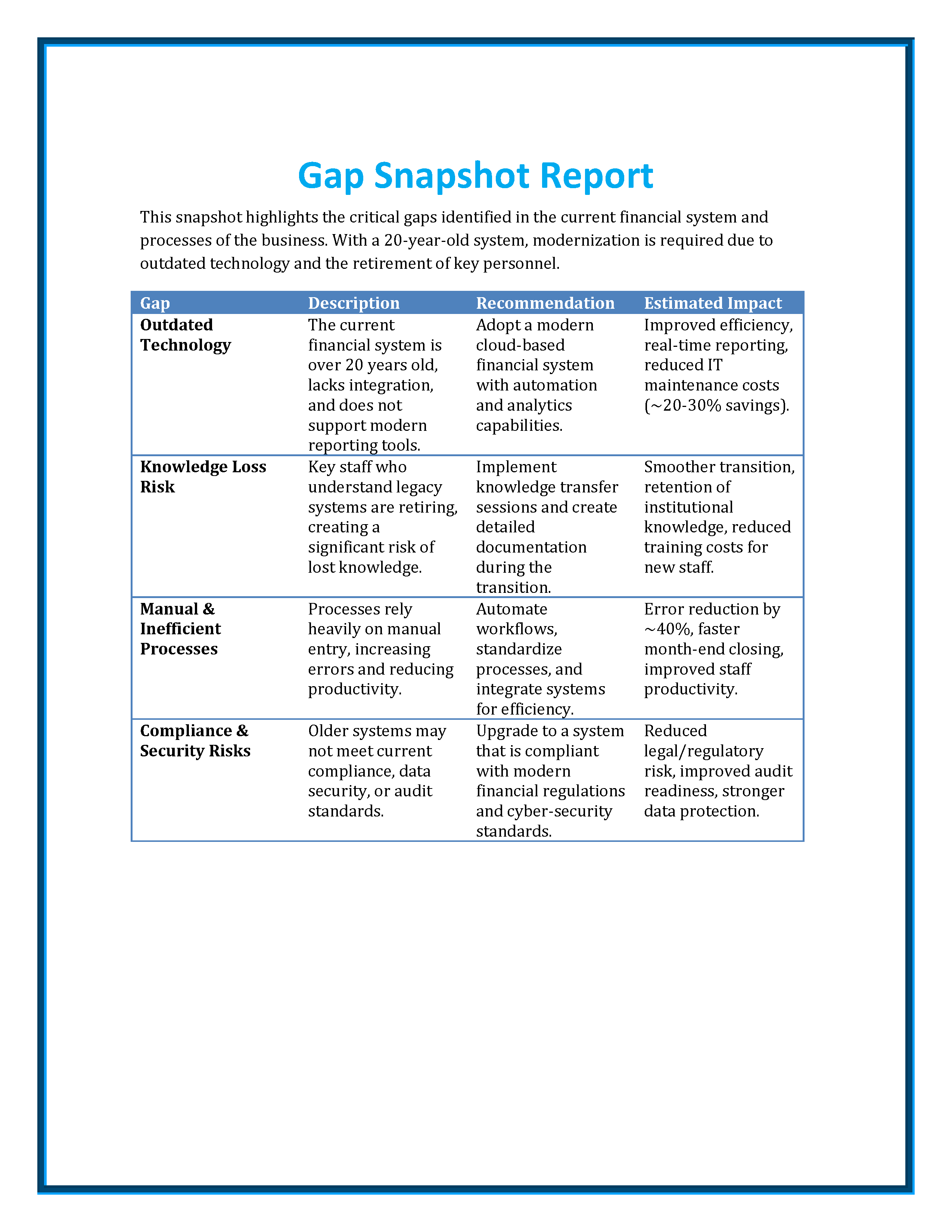 Gap Identification – Up to 3 critical gaps slowing down your project.